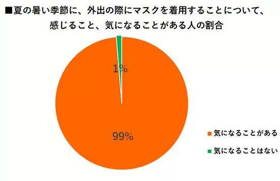 夏のマスク着用に関する意識調査は、18~59歳の女性520人を対象に6月9~10日に行われた。調査対象者のうち、99%が夏マスクに関して悩みを抱えている。