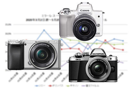全国の家電量販店やECショップでPOSデータを集計する「BCNランキング」によると、5月のミラーレス一眼デジタルカメラの販売台数は前年比38.0%となった。4月の26.1%はかろうじて上回ったものの、依然として苦境が続いている。