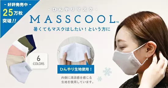 マスクールは、内側に接触冷感生地を使用することで、夏場のマスク着用に伴うストレスの軽減を目的に開発された夏用マスク。洗って繰り返し使用でき、豊富なカラーバリエーションで幅広い年齢層や、その日のファッションに合わせて使える。