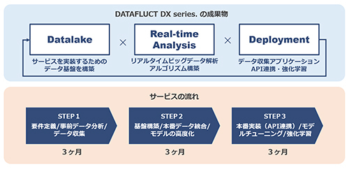 なお、第1弾として提供開始するDATAFLUCT forecasting.を皮切りに、“経営予測”や“ダイナミックプライシング”など、15以上のサービスの開発を現在進めている。いずれのサービスも、データレイクの設計、データ解析、アプリケーションの実装に高速で取り組み、プロジェクト開始からおよそ9カ月でのビジネスへの活用と価値創出を目指す。
