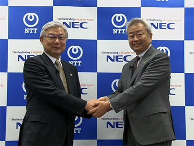 NTTの澤田純社長(右)とNECの新野隆社長