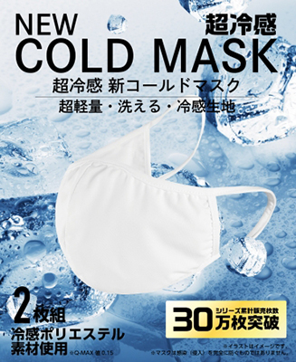 NEW COLD MASKは、冷感生地を採用し、マスクの蒸れから涼しく快適な着用感を実現。三層タイプの立体型となっているため、マスクの機能はもとより、顔にピッタリとフィットする作りとなっている。吸熱、保水、蒸発に優れており、洗って何度も着用することができる。