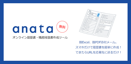 スマホで履歴書が無料作成できるサイト「anata」、7月2日にローンチ