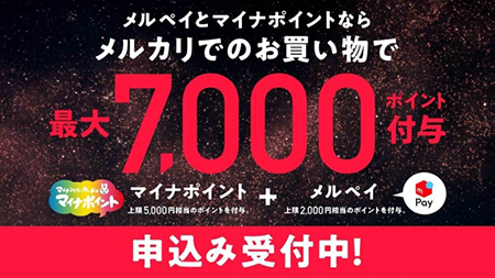 今回のキャンペーンによって、すでに発表しているキャンペーン(最大1000円相当)とマイナポイント(最大5000円相当)とを合わせた最大6000円相当に、メルペイへのチャージによる1000円相当のポイントを加えた合計7000円相当のポイントが付与されるほか、抽選で最大1000万円相当のポイントが付与される機会を得ることができ、お得にメルカリとメルペイを利用することが可能となる。