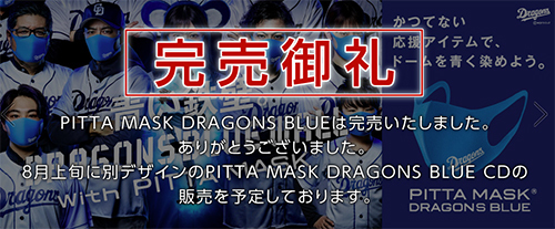 中日ドラゴンズは6月28日から「PITTA MASK DRAGONS BLUE」(605円)を販売していたが、早々に完売。8月上旬に別デザインの販売予定をアナウンスしている。