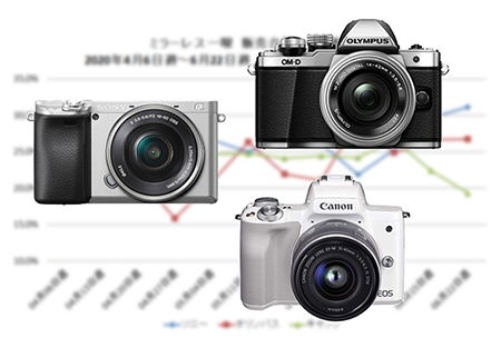 全国の家電量販店やECショップでPOSデータを集計する「BCNランキング」によると、6月のミラーレス一眼デジタルカメラの販売台数は前年比68.8%。減少幅は大きいものの、4月の26.1%、5月の38.0%から急回復を果たした。