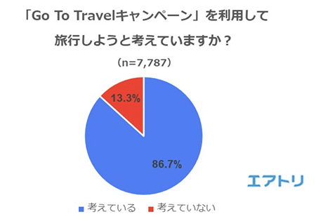 一方でGo To キャンペーンを利用しようと考えている人は86.7%となるなど、割引サービスを活用したいとするニーズが高いことを示している。