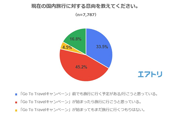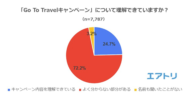 東京都で7月16日に新型コロナウイルス新規感染者数が過去最高の286人に急増する一方で、政府の観光支援事業「Go To トラベルキャンペーン」が同月22日からスタートする。消費者はどのようにとらえているのだろうか。格安航空券サイトのエアトリの調査によると、8割の人が「キャンペーンを利用したい」という強い意向を示す一方で、7割の人がキャンペーン内容を「よくわからない」と回答していることがわかった。