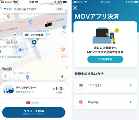 PayPayは、Mobility Technologiesが運営するタクシー配車アプリ「MOV(モブ)」でキャッシュレス決済サービス「PayPay」が7月21日から利用可能になった。MOVのアプリ決済で、スマートフォン(スマホ)決済サービスが導入されるのはPayPayが初めてとなる。