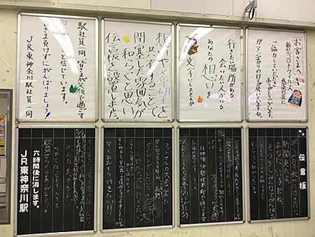 JR東日本 横浜支社 東神奈川駅の荒井愛一郎助役は、「企画が立ち上がったのは4月下旬ごろ。コロナ禍で閉塞感が漂っていた頃でしょう。そんななか、若手が少しでも駅の利用者を元気づけたいと立ち上がった。悩んでいたところ、先輩が駅ならではの要素として伝言板はどうかとアドバイス。閉塞感を発散する場として設置に至った」と経緯を説明する。