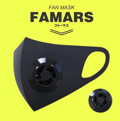 FAMARSは、マスクの内側に充満する湿気と熱気を、フィルターを通して外部へ排気し、常に快適な状態で装着することができるUSBファン付きマスク。蒸れるマスク内環境をストレスフリーにする接触冷感素材と、紫外線を99%カットするUVケア対応素材を使用している。