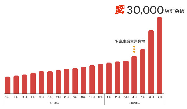 日本最大級の出前サービス「出前館」は、今年7月に加盟店数が3万店舗を突破した。