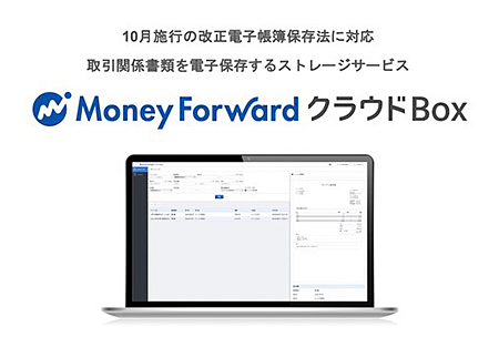 マネーフォワード クラウドBoxは、電子帳簿保存法の要件を満たして、領収証や請求書などの取引関係書類を電子化し、クラウド上で保管できるサービス。今年10月の改正電子帳簿保存法施行に合わせて9月下旬に提供を開始する予定。