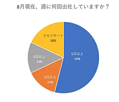 8月時点で約半数の人が週5日オフィスへ出社。フルリモートは18%