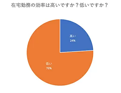 76%の人が在宅勤務の効率は「低い」と回答