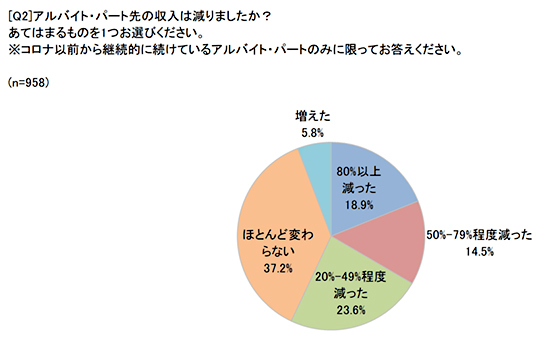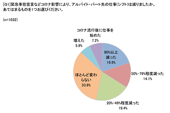 アルバイト・パートで働く人に新型コロナによる経済的な影響が出ている