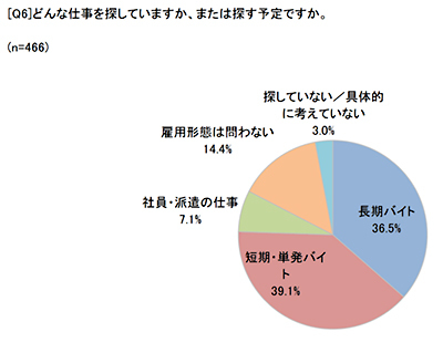 不安を抱えたまま事態の好転を待つのではなく、改善しようという動きもある。「新たに仕事を探そうと思うか」聞いたところ、肯定したのは45.2%。なかでも7割以上が新しい仕事を探していた。候補として多く挙げられていたのは「短期・単発バイト」。アンケートでも「今後、1日だけ働く単発バイトを探す機会が増えそうですか」といった質問に対し、39.5%が「増えそう」と答えていた。