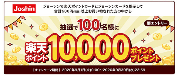 キャンペーンに参加するには、サイトからエントリーする必要がある。買い物後でも期間中のエントリーなら対象となる。また、買い物時に楽天ポイントカードとジョーシンカードを提示する(カード・アプリのどちらでもいい)。