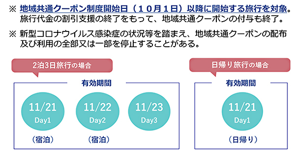 有効期間は、宿泊旅行の場合は宿泊日とその翌日、日帰り旅行の場合は当日限り。利用エリアは、宿泊地とその隣接する都道府県内となり、地域共通クーポンの取扱店舗には、店頭など見えやすい場所に、ステッカーやポスターを掲示する。別途、公式サイトで地域共通クーポン取り扱い店舗のリストを公開する。