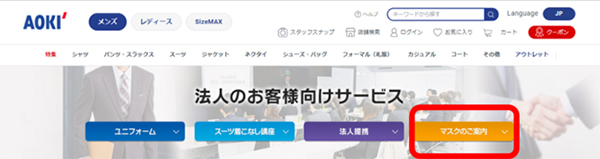 AOKIは、「アジャスター付き・UVカット・ダブル抗菌・洗えるクールマスク」の法人受注を開始した。法人受注の開始に伴い、AOKI公式オンラインショップ上に専用ページを開設した。