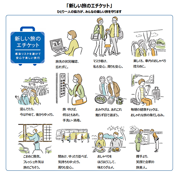 旅行時の毎朝の体温チェックや接触確認アプリ「COCOA」の利用、浴場や食事、飲食施設での3蜜対策の徹底など「Go To トラベルの利用にあたっての遵守事項」を守ることが事業参加の条件となっている。