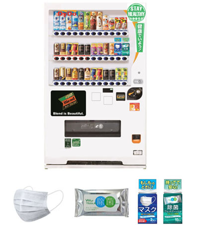自販機を通じて感染を抑止する上で必要なマスクや除菌ウェットティッシュなどの公衆衛生用品を手軽に購入することが可能となることで、同社では顧客にとって身近な存在として自販機の新たな価値を提供できると判断した。約3000台で販売することを予定している。