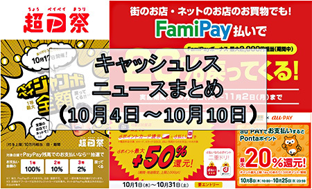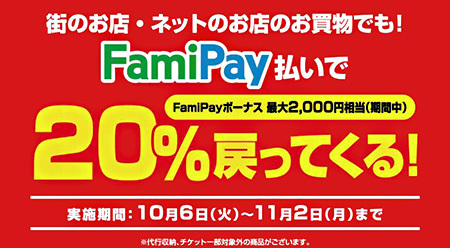 【今週のキャッシュレスニュースまとめ】10月に使えるスマホ決済のキャンペーンが続々! 注目は20%還元の“FamiPay”