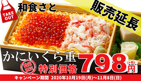 「かにいくら重」のテイクアウト特別価格798円を延長! 和食さとのキャンペーン