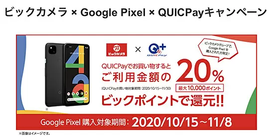 - 「ビックカメラ × Google Pixel × QUICPayキャンペーン」=https://www.quicpay.jp/campaign/2020/bicqp.html