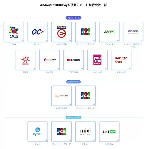 今回のキャンペーンはQUICPayのみ対象で、QUICPayを設定できないカード、QUICPay決済を利用できないビックカメラ店舗は対象外。なお、対象カードには、auじぶん銀行のデビットサービス「じぶん銀行スマホデビット」やプリペイドカードの「Kyash」「LINE Pay カード」も含まれている。