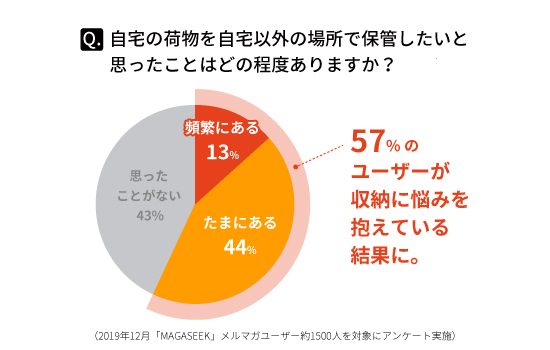 MAGASEEKが19年に実施した会員アンケートでは、「自宅の荷物を自宅以外の場所で保管したいと思うか」という問いに対し、57%が「頻繁にある・たまにある」と回答しており、半数以上のユーザーが収納に関する問題を抱えていることがわかった。そこで今回、MAGASEEKを利用する30代から40代のファッション感度の高い女性を中心に収納スペースで困っている顧客の様々なニーズに応えるため、サマリーポケットを導入した。