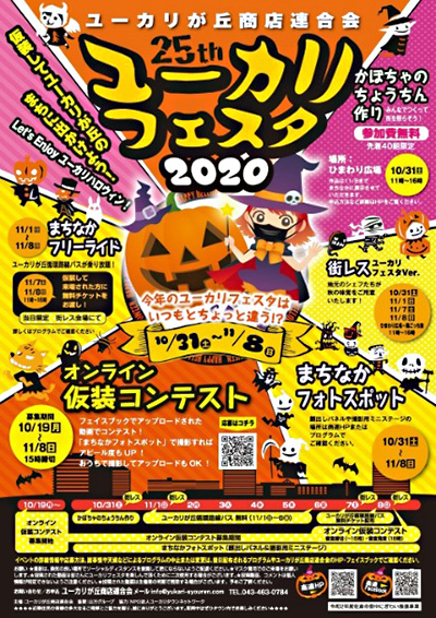 千葉県佐倉市ユーカリが丘の「ユーカリが丘商店連合会」、ユーカリが丘を開発する街づくり企業の山万は、「仮装してユーカリが丘のまちに出かけよう!Let’s Enjoy ユーカリハロウィン!」と題し、「ユーカリフェスタ2020」を実施する。毎年10月第4日曜日に実施しているが、今年は新型コロナウイルス感染拡大の影響を考慮し、密を避けるため単日開催ではなく10月31日から11月8日までの1週間にわたって実施する。