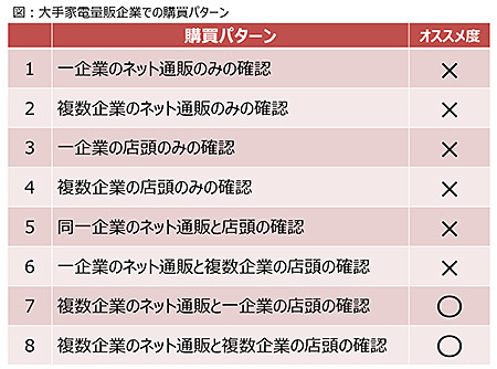 最近では、ネット価格と店頭価格を同一にしている企業もあるが、価格が同一ではない企業も多い。そのため、ネット価格よりも店頭価格の方が安いケースも結構ある。ネット通販価格だけで判断せず、店舗の価格を確かめてから決めるといい。