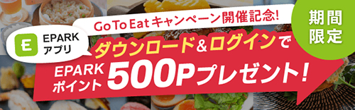 順番待ち受付・ネット予約が可能な「EPARK」で、Go To Eatキャンペーンの利用が便利になる「EPARKアプリ」を初回ダウンロード&ログインしたユーザーに、EPARKポイント500Pを付与するキャンペーンを実施している。期間は2021年1月31日まで。