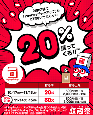 また、対象店舗でテイクアウトの「PayPayピックアップ」を使うと、30%還元にパワーアップしたり、オンラインの対象ストアで最大30%相当のポイントが還元されたりするなど、さまざまな形のお得なキャンペーンが繰り広げられている。祭りの最終日を満喫しよう。