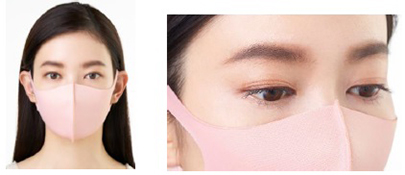 コーラルピンクのマスクはやわらかく優しい印象を与える。ピンク系の中でも血色感演出効果の高い、コーラルピンクがとくにおすすめとのこと。どのファンデーションの色を使っている人にも合うマルチカラーとなっている。メイクはあまり作りこみ過ぎず、ソフトに仕上げるのがおすすめ。目もとは肌なじみのよいベージュ系で自然なグラデーションに仕上げる。眉もふんわりソフト眉で仕上げて優しい印象に。