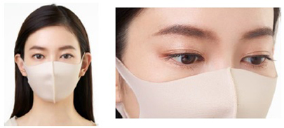 ベージュ色マスクは、肌なじみがとてもよく、親しみやすいナチュラルな印象を与える。肌なじみのよさによって、顔の印象がぼやけて見えないように、メイクでは、アイカラーにゴールドなどの輝きやツヤを取り入れたり、マスカラをしっかり塗布し、華やかさを与えるとよいという。