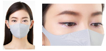ライトグレー色マスクは、知的でスタイリッシュな印象を与える。肌うつりの面では影色に近いので、肌くすみを感じさせないために、目の下のクマやくすみをしっかりカバーし、下まぶたに輝きをプラスするとよいという。スタイリッシュな印象に合わせて、切れ長なアイラインもおすすめ。より洗練された印象に仕上がる。