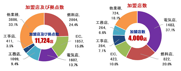 11月16日時点における加盟店数は4000店。その内訳は、電気店が37.1%、燃料店が20.6%、ECが10.6%、工事店が7.1%、工務店が6.6%、他業種が18.1%となっている。