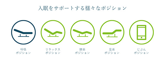 逆に起きる際は、あらかじめ設定した起床時間に合わせて、ベッドの背がゆっくりと約10度まで上がって快適な目覚めをいざなってくれる。