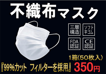 大運は、不織布マスクを業界最安値水準の1箱(50枚入り)当たり税別350円で12月15日8時から販売している。48時間限定のタイムセールも実施中だ。
