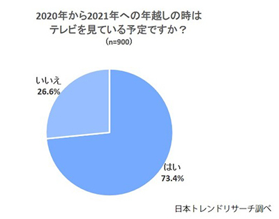 まず初めに、年末の年越しの時にテレビを見ている予定か聞いたところ、73.4%(661人)が「はい」と回答した。