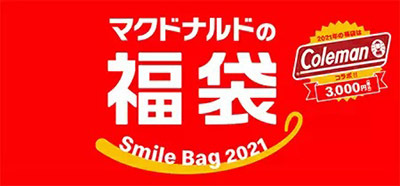日本マクドナルドは、「マクドナルドの福袋2021」のウェブ抽選予約受付を12月22日23時59分まで実施した。福袋では、アウトドア用品ブランドの「Coleman(コールマン)」とコラボレーション。オリジナルデザインのトートバッグなどをラインアップしている。税込み価格は3000円。販売期間は、2021年1月1~3日としている。