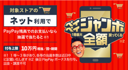 このほか、12日からPayPayモール・Yahoo!ショッピング、29日から出前館を対象にした「ペイペイジャンボ(オンライン)」も開催される予定。運次第にはなるが、高額還元のチャンスなので対象店舗を利用する際はPayPayを使うことをすすめたい。