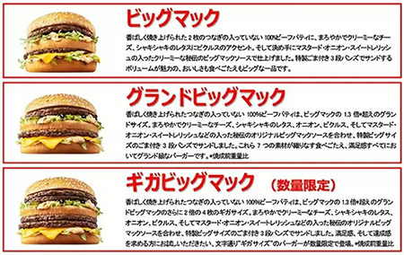 日本マクドナルドは、1月19日まで「今年はみんなでBIG SMILE」をテーマに「ビッグマックセット」を特別価格の税込み550円(通常価格は税込み690円)で販売している。また、「グランドビッグマック」と「ギガビッグマック」を期間限定で販売するとともに、「めくってスマイル お年玉ック!!」も開催している。