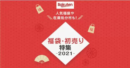 初売り特集では、楽天市場に出品する300以上の店舗が販売するさまざまな福袋をラインアップ。「中身の見える福袋」「中身が選べる福袋」「楽天ランキング入賞商品の福袋」などの定番、高級グルメ、時短グルメ、美容・リラックス商品、在宅ワーク用品など、自宅で過ごす時間を充実させる商品を集めた「おうち時間福袋」、地方食材・特産品を集めた「まち楽福袋」などを用意している。