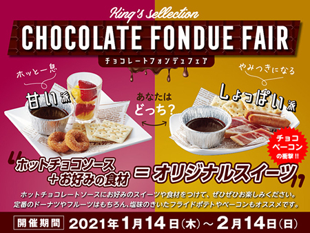 物語コーポレーションが全国で252店舗を構える「焼肉きんぐ」は、1月14日~月14日までの期間限定で「チョコレートフォンデュフェア」を実施している。「甘い派」と「しょっぱい派」の両方に対応したフェアとなっている。