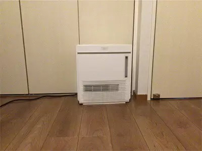 EFH-1200Fは、厚さが180ミリとスリムでコンパクトなボディで、ハンドルがついているため移動が楽。すっきりしたシンプルなデザインで、場所をとらないので個室に置いてもいいだろう。早速、マンションの6畳部屋で使ってみた。