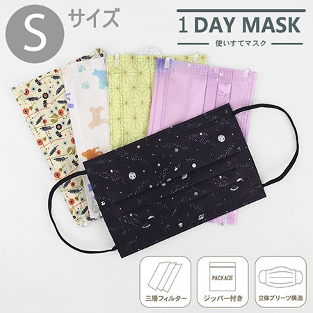 今回の小さめSサイズは、現在販売中の1dayマスクよりも、一回り小さめのサイズ。一般的なマスクで大きいと感じられる女性や子どもにおすすめとなっている。