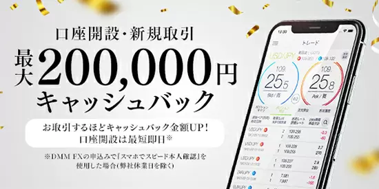 DMM.com証券は、同社が提供する「DMM FX」において、「新規口座開設+お取引で最大200,000円キャッシュバック!」キャンペーンを2月1日から実施している。